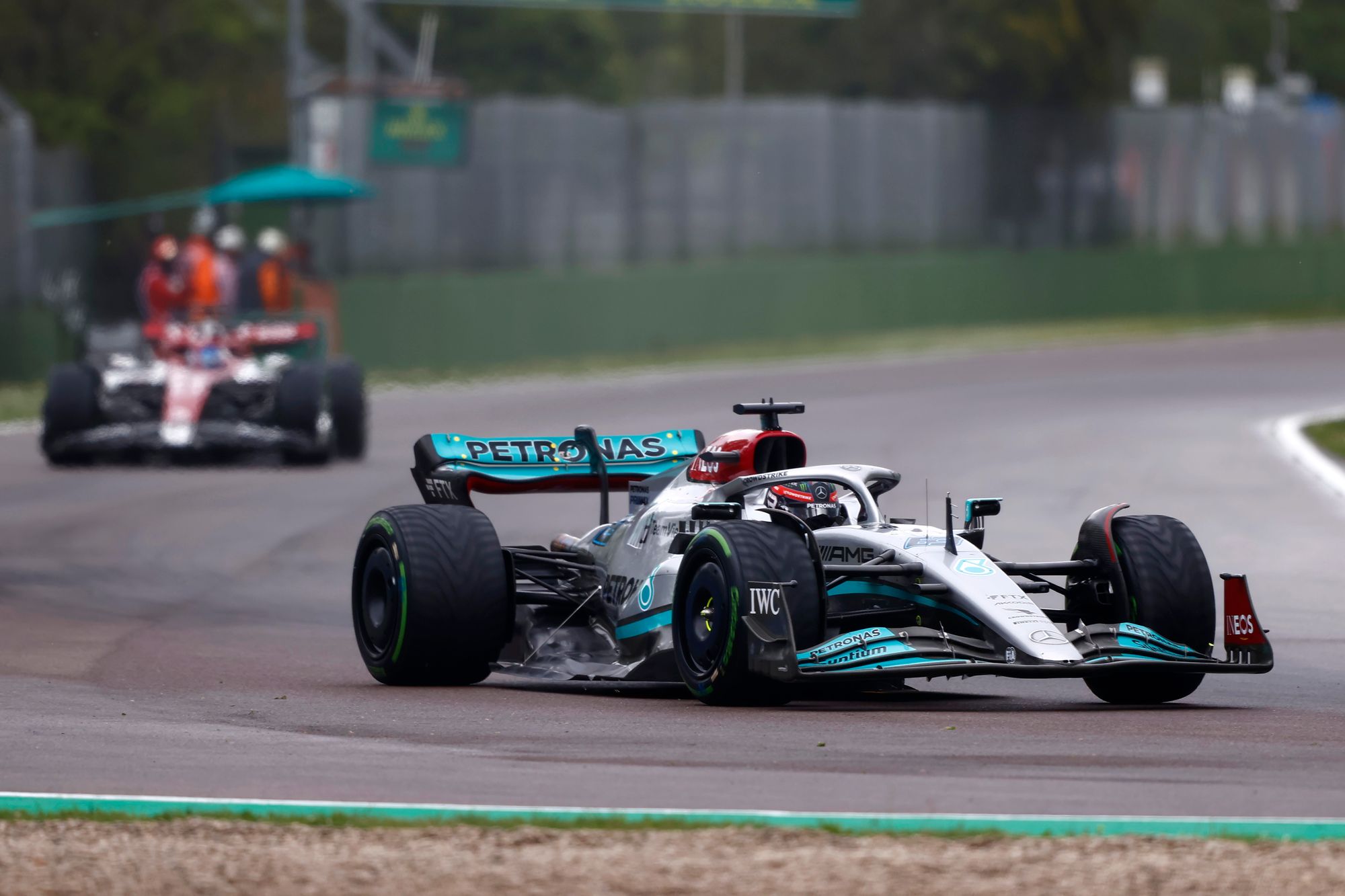 He caught Russell in a similar way to how to how the current Mercedes driver caught the Finn in last year's Grand Prix at Imola when driving for Williams, but that time ending prematurely in a high-speed accident at the end of the pit straight.