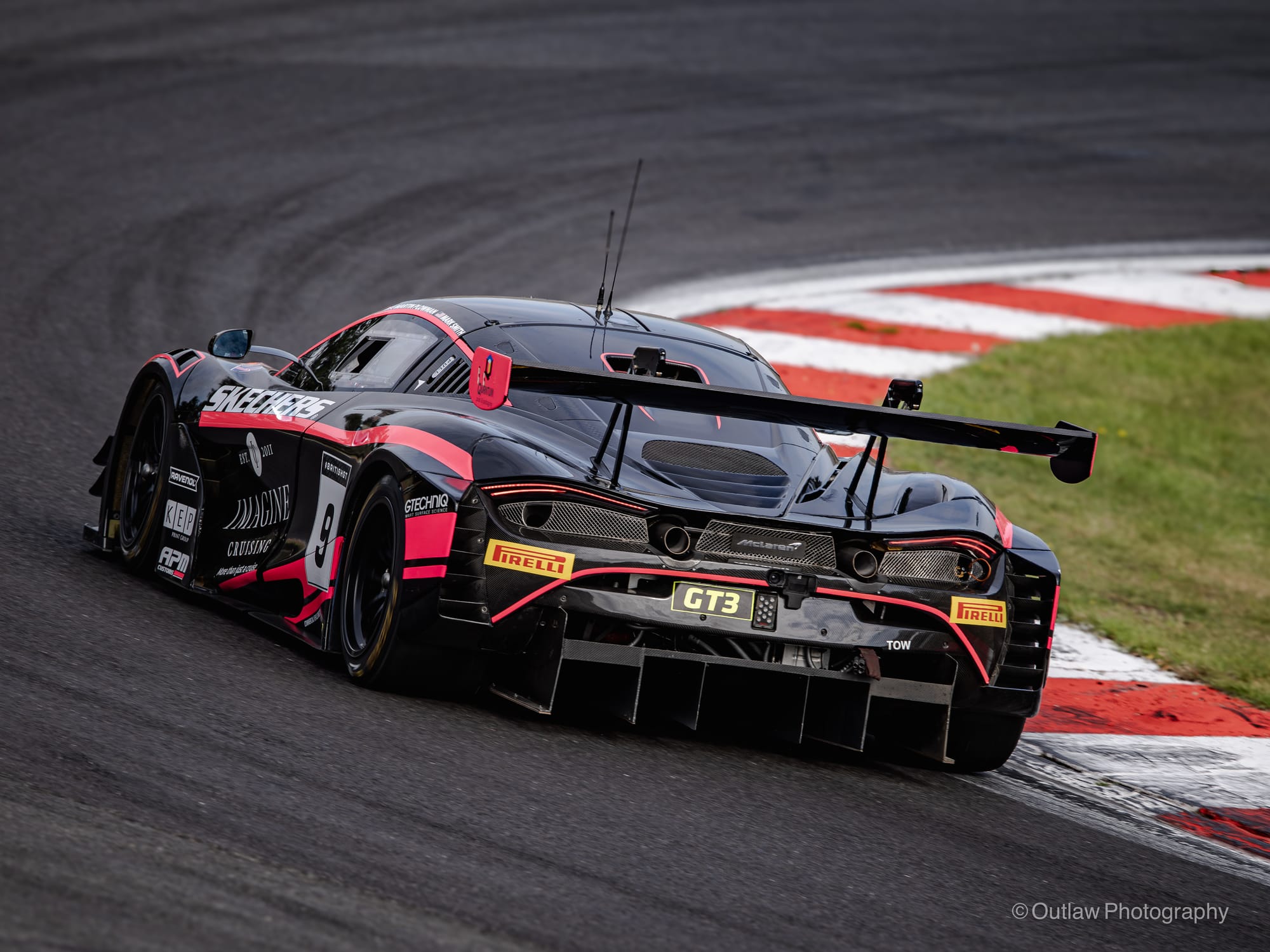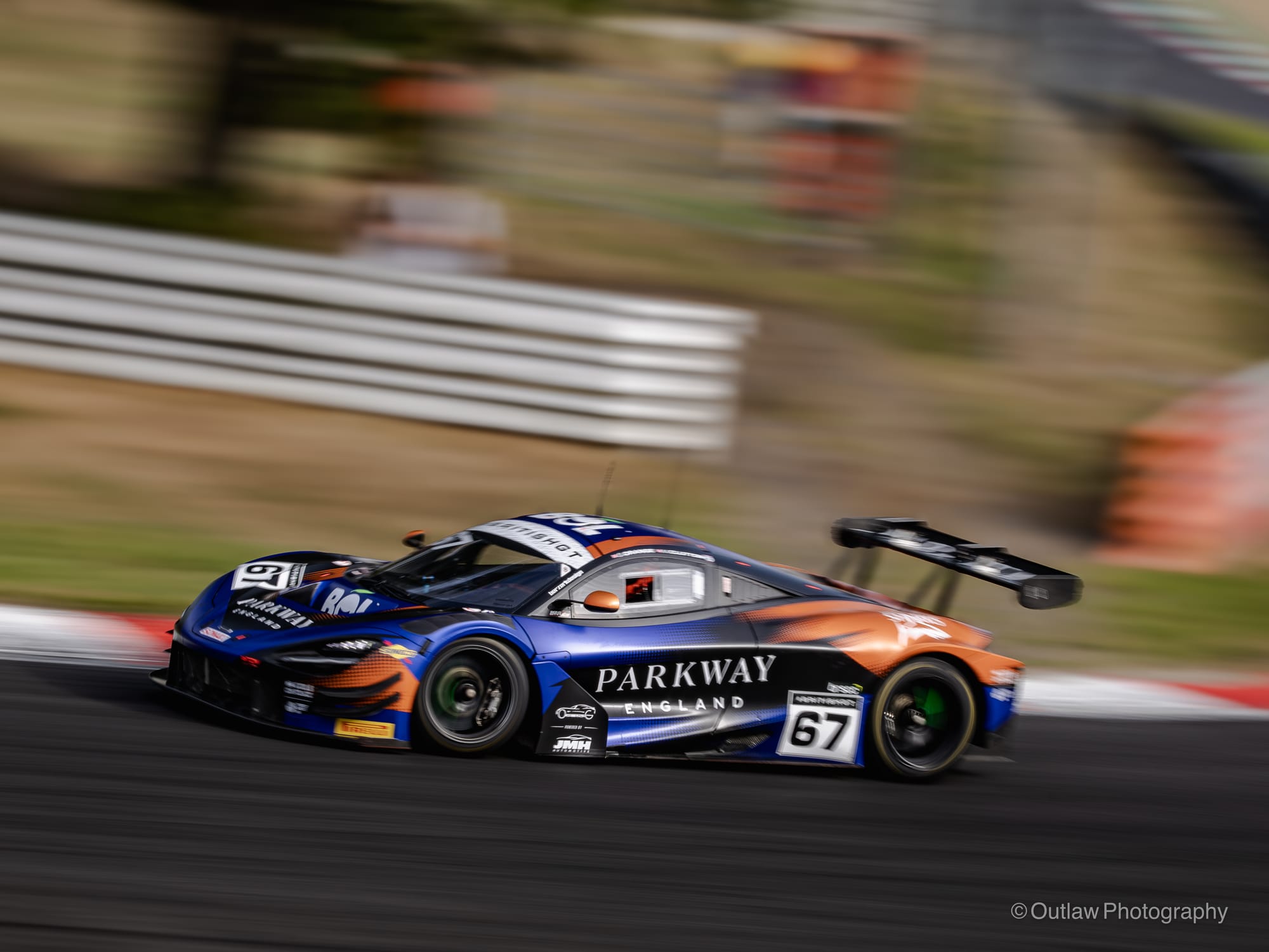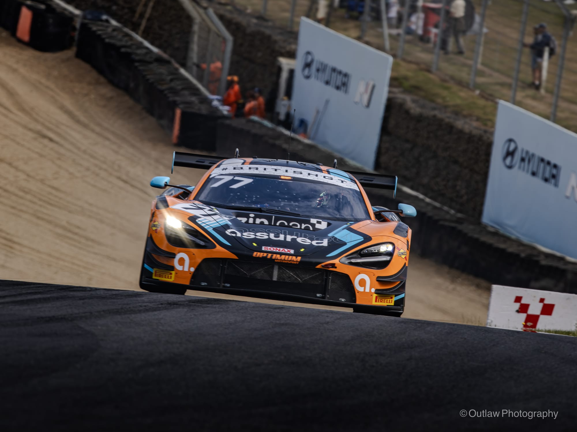 Incidents kept coming. Car 67, Orange Racing’s McLaren, ran wide into the gravel, allowing the Optimum Motorsport McLaren, car 3, through. Then, just 25 minutes in, Mahiki Racing’s Ginetta GT4, car 84, burst into flames on the run to Hawthorns. The driver pulled over as black smoke poured through the cockpit quickly jumping out but bringing out a full course yellow. Marshals eventually extinguished the fire, but the car was out.