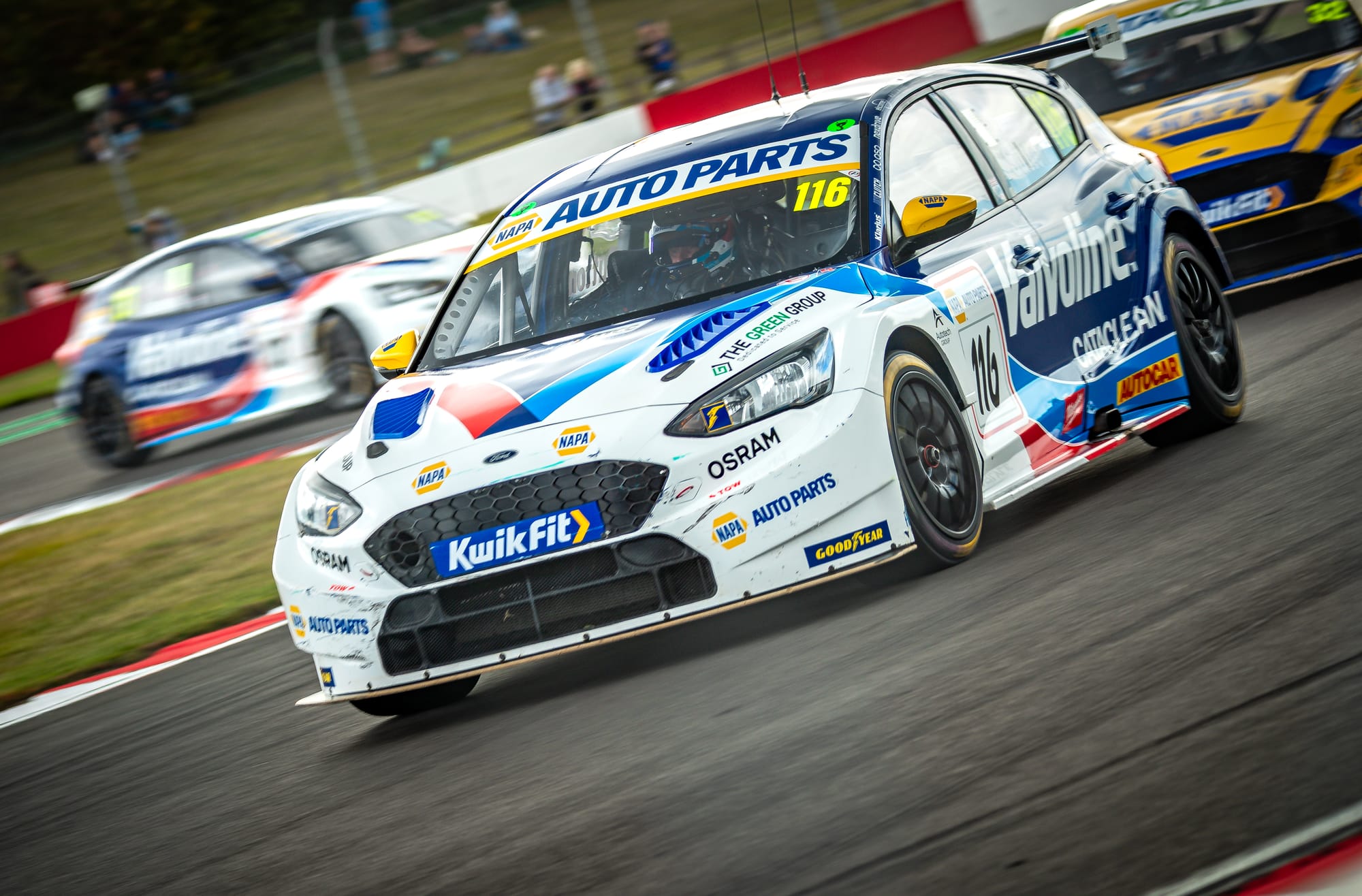 While the two VERTU Hyundai drivers controlled the race at the front, attention soon turned to the thrilling battle for third. Restart Racing’s Chris Smiley provided one of the drives of the opening laps, using his turbo boost to maximum effect and valiantly keeping a trio of NAPA Racing UK Fords behind him. For a time, Smiley looked like he might pull off a giant-killing result, but the relentless pressure told. Daniel Rowbottom forced his way through, followed by teammates Ash Sutton and Dan Cammish, who muscled past to secure third, fourth and fifth respectively.