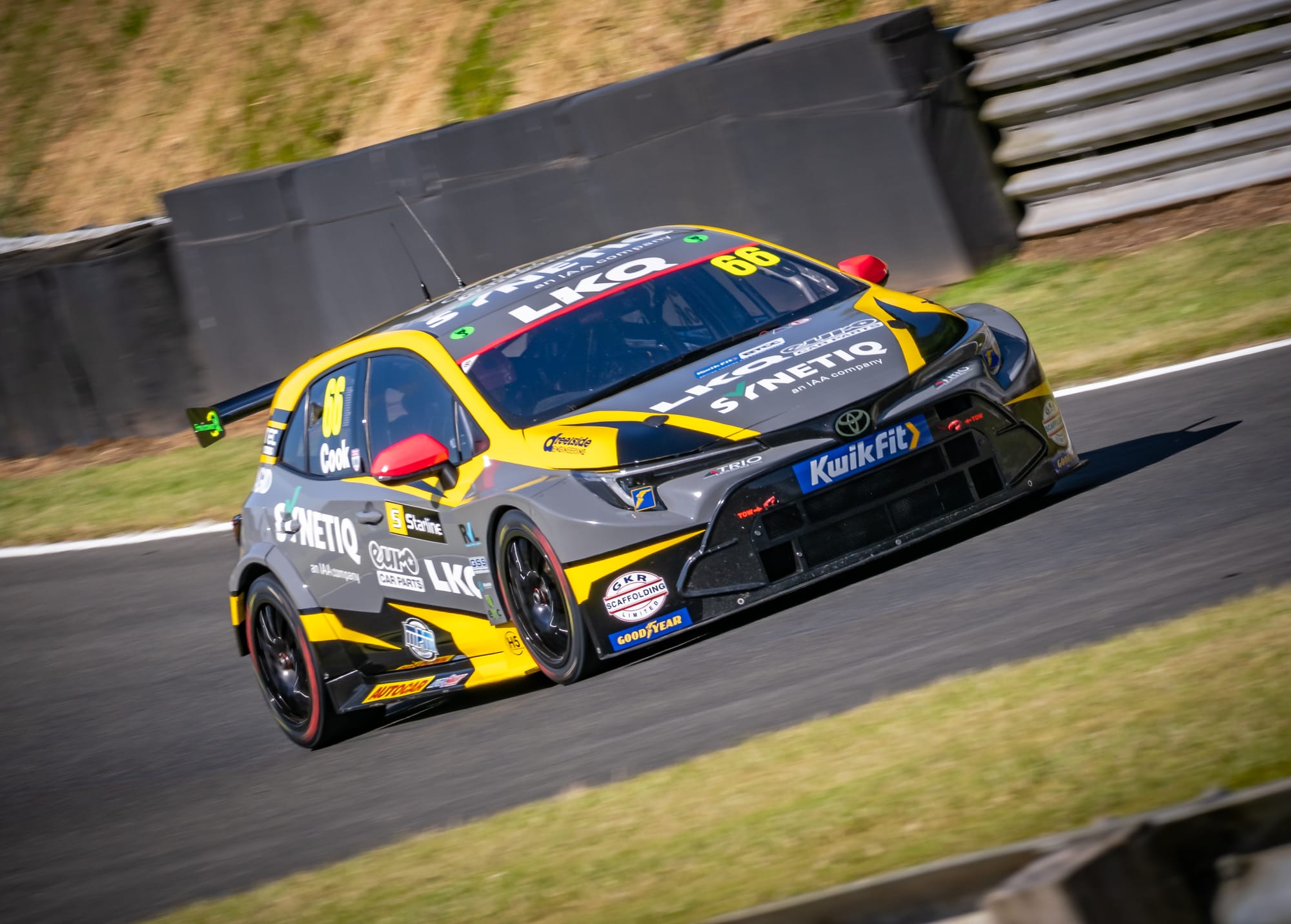 Race 2 …. and Josh Cook #66 in the LKQ EURO CAR PARTS TOYOTA produced one of the finest opening laps in recent memory as, the SYNETIQ driver blitzed from eighth on the grid to lead Round 14.