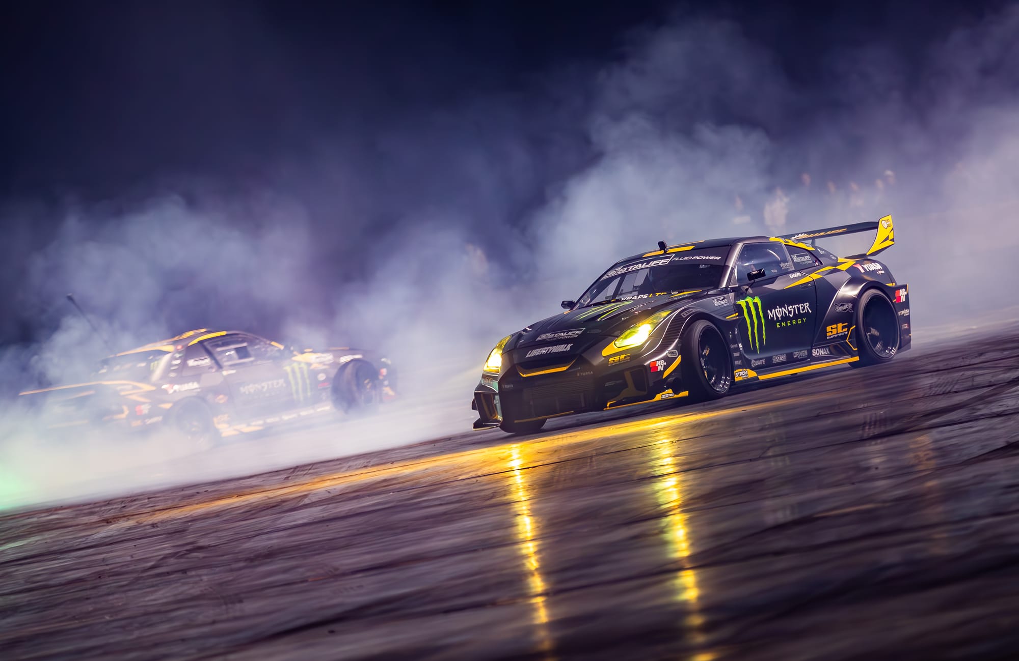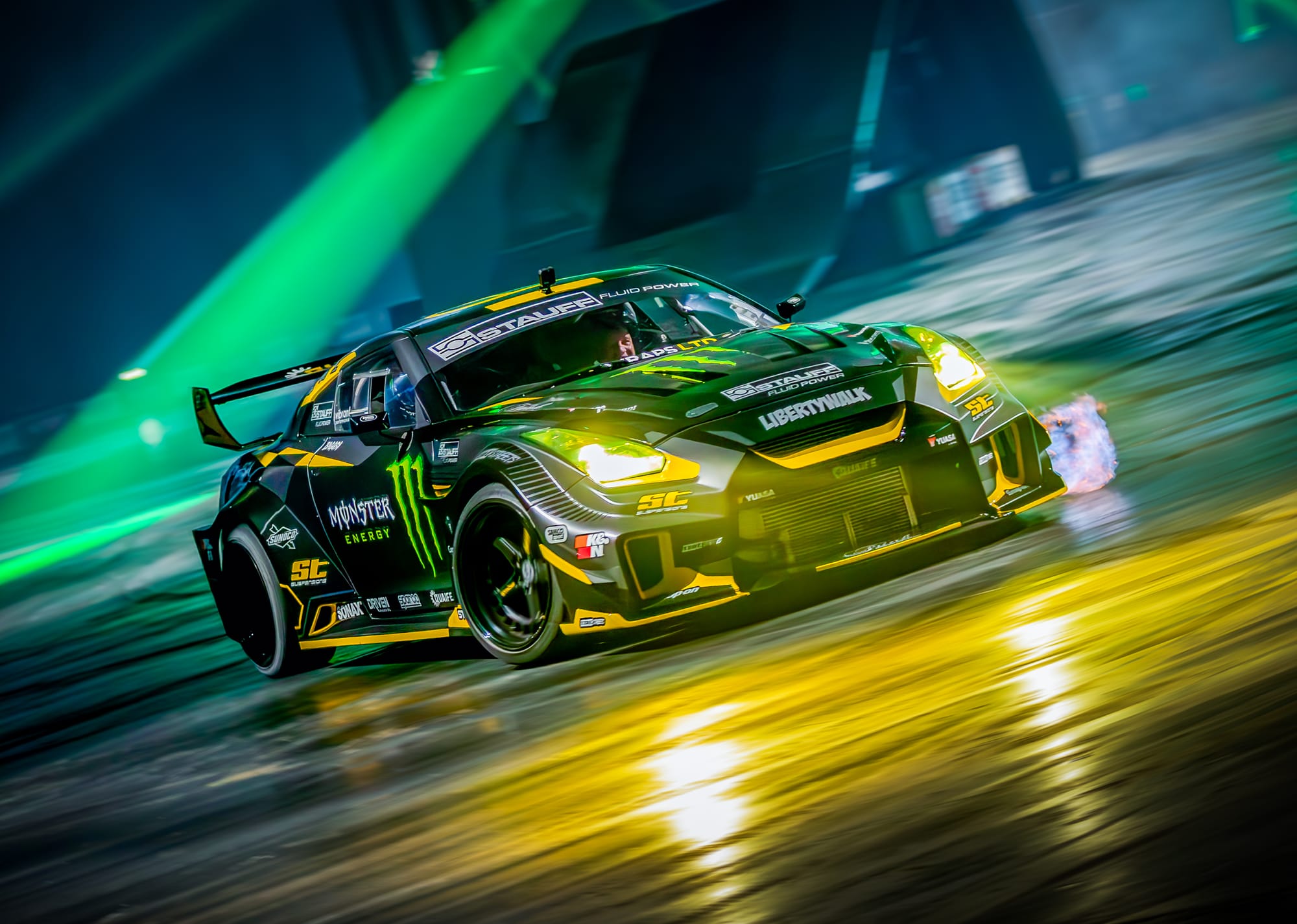 One of the standout attractions was none other than the Nissan GT-R, piloted by Steve โBaggsyโ Biagioni and Shane Lynch. The duo brought their drifting prowess to the arena, showcasing their skills during one of the many live performances. Spectators were on the edge of their seats as Baggsyโs 1000hp Liberty Walk Nissan GT-R and a high-powered Toyota GT86, both from SB Motorsport, effortlessly drifted in sync, creating a symphony of roaring engines and squealing tires. It was a thrilling demonstration that truly highlighted the art of drifting.
