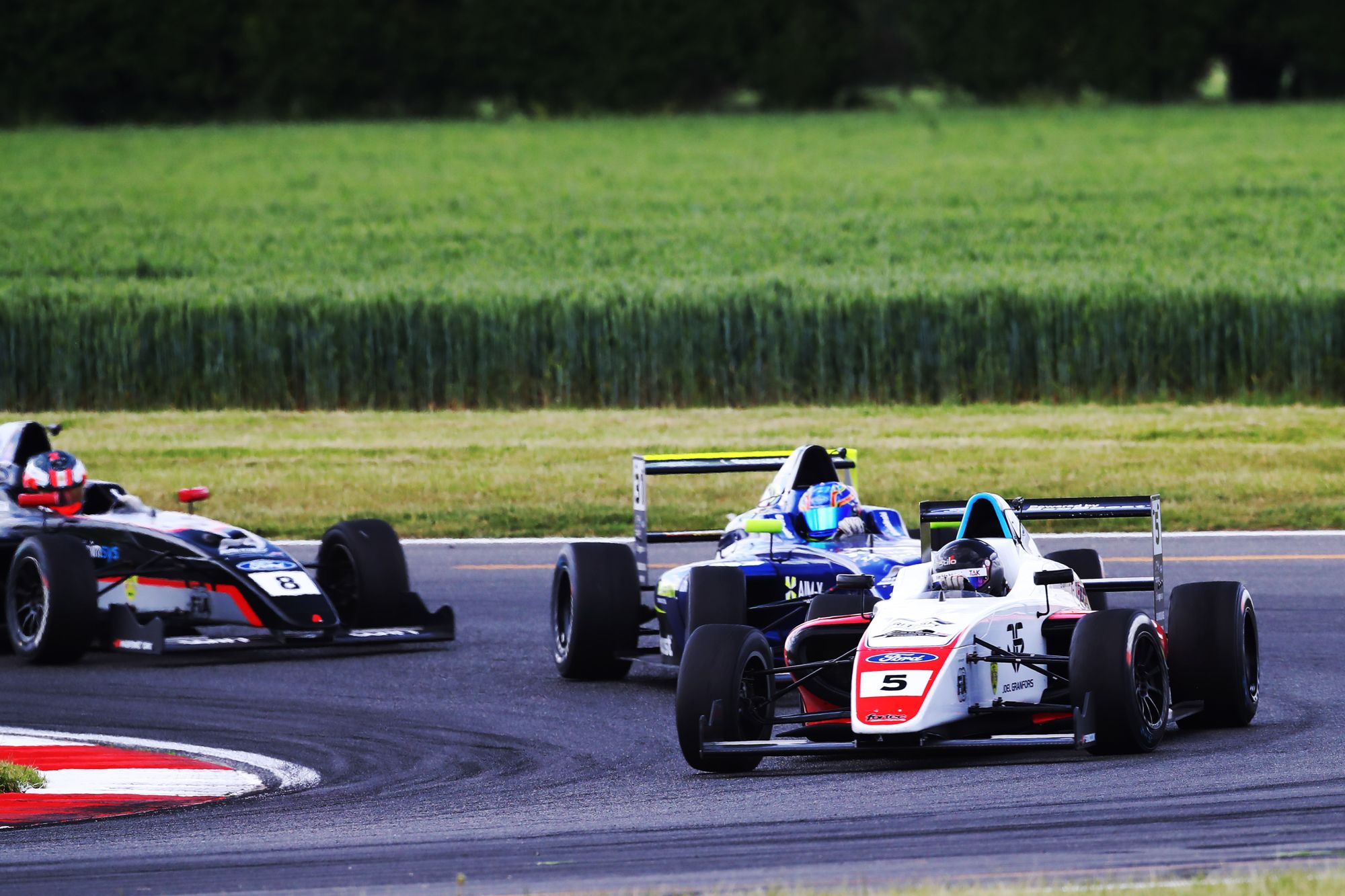 Gray led the Daventry-based team’s charge in qualifying on Saturday morning, sealing his first front row start in single seaters, with Hedley just behind in fourth. Granfors cemented the team’s form, making it all three cars in the top ten.