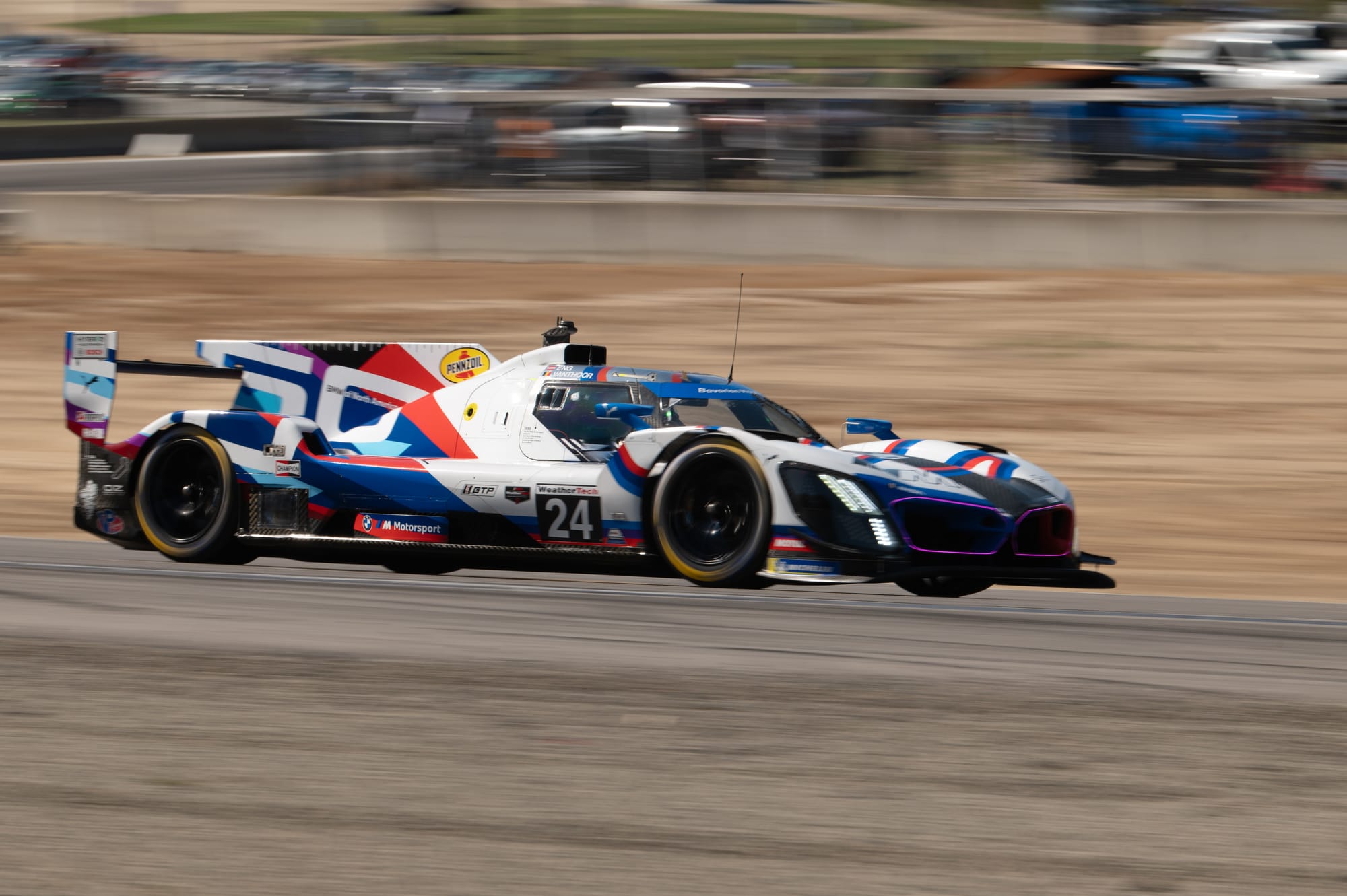 The opening laps were electric, with Dries Vanthoor in the No. 24 BMW M Hybrid V8 defending fiercely from the no.7 Penske Porsche of Felipe Nasr, who dove under the No. 6 Penske Porsche 963 of Matt Campbell to take second in the early corners. Within the first 30 minutes, Nasr showcased blistering pace, pushing Vanthoor to the limit. The BMW held strong, until Nasr finally broke through with a daring outside move in Turn 5 to claim the lead.