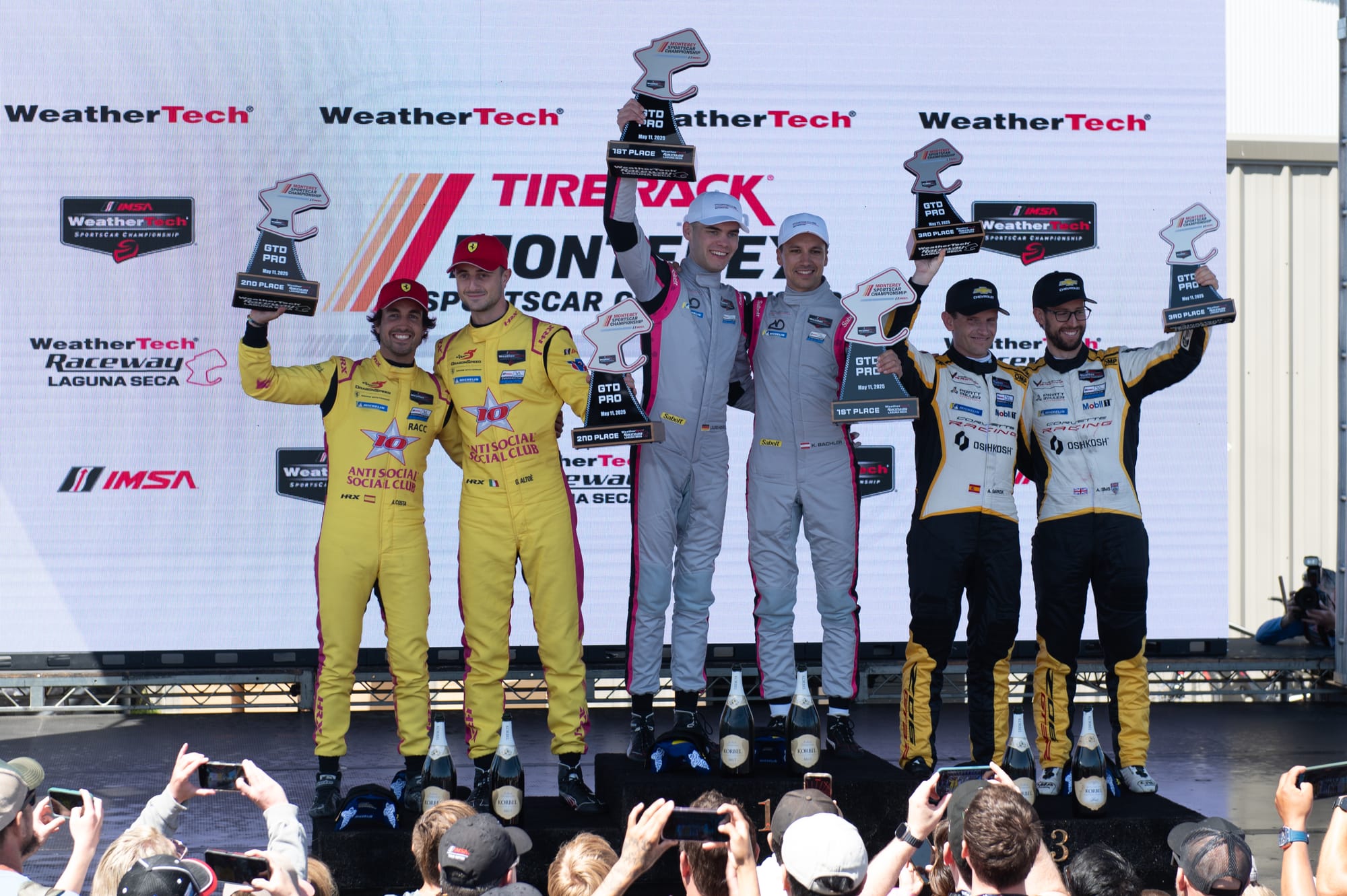 The 2025 edition of the TireRack.com Monterey SportsCar Championship delivered an exciting, caution-free 2 hours and 40 minutes of multi-class racing on the 2.238-mile rollercoaster that is WeatherTech Raceway Laguna Seca. Falling on Motherโs Day weekend, the event served up a fierce showdown in IMSA's GTP and GT categories โ and ended with a familiar trio atop the podium.