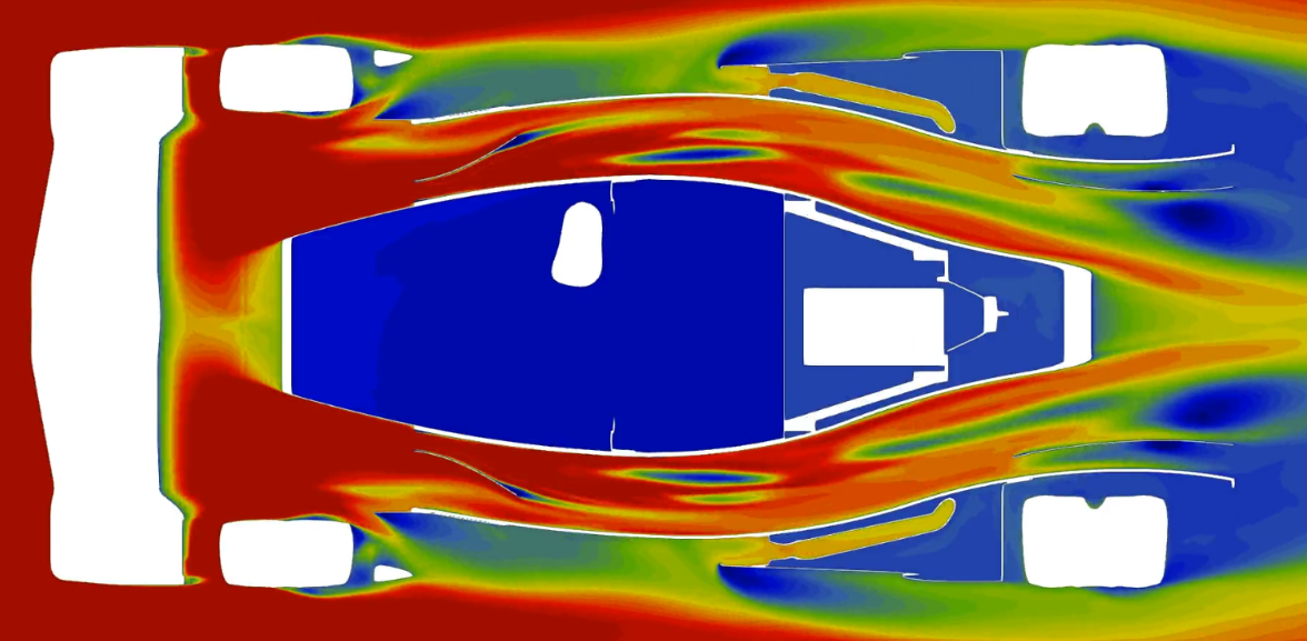 Unlike traditional prototype car designs, airflow is wrapped round the sides of the car, and channelled through the underfloor from the very front of the chassis, improving aerodynamic consistency while allowing for a more natural and comfortable driver position.