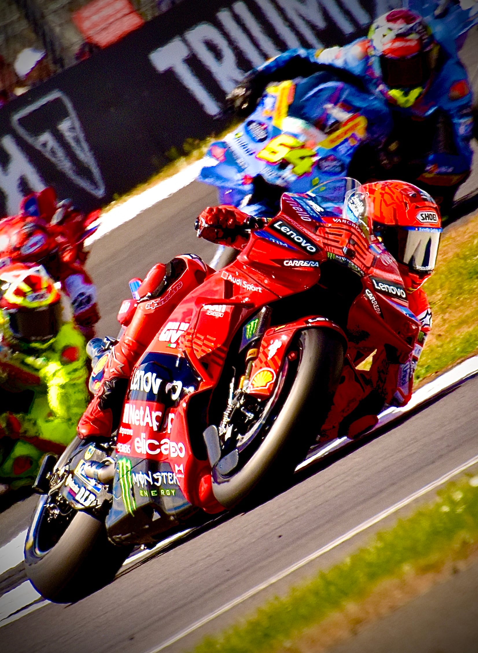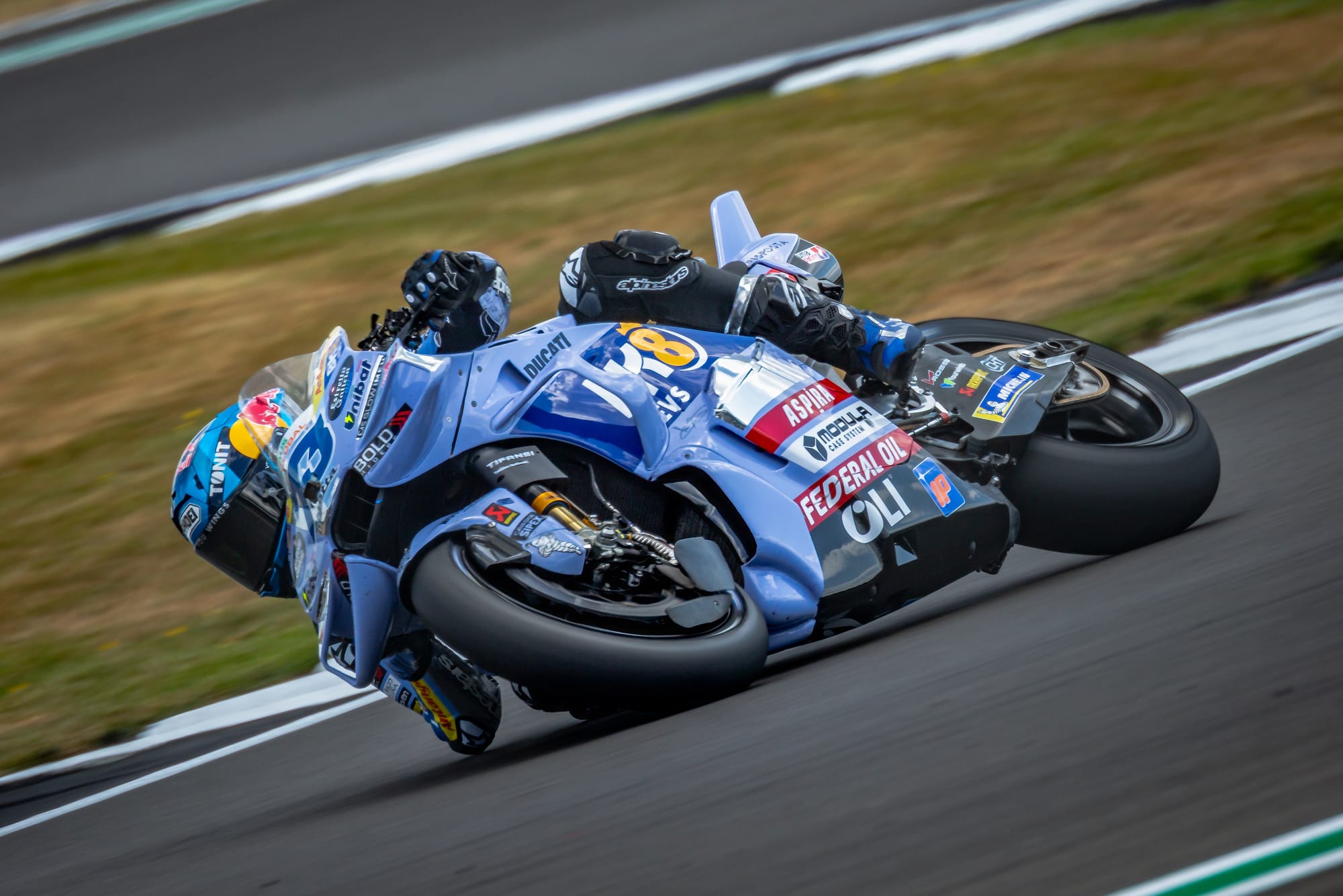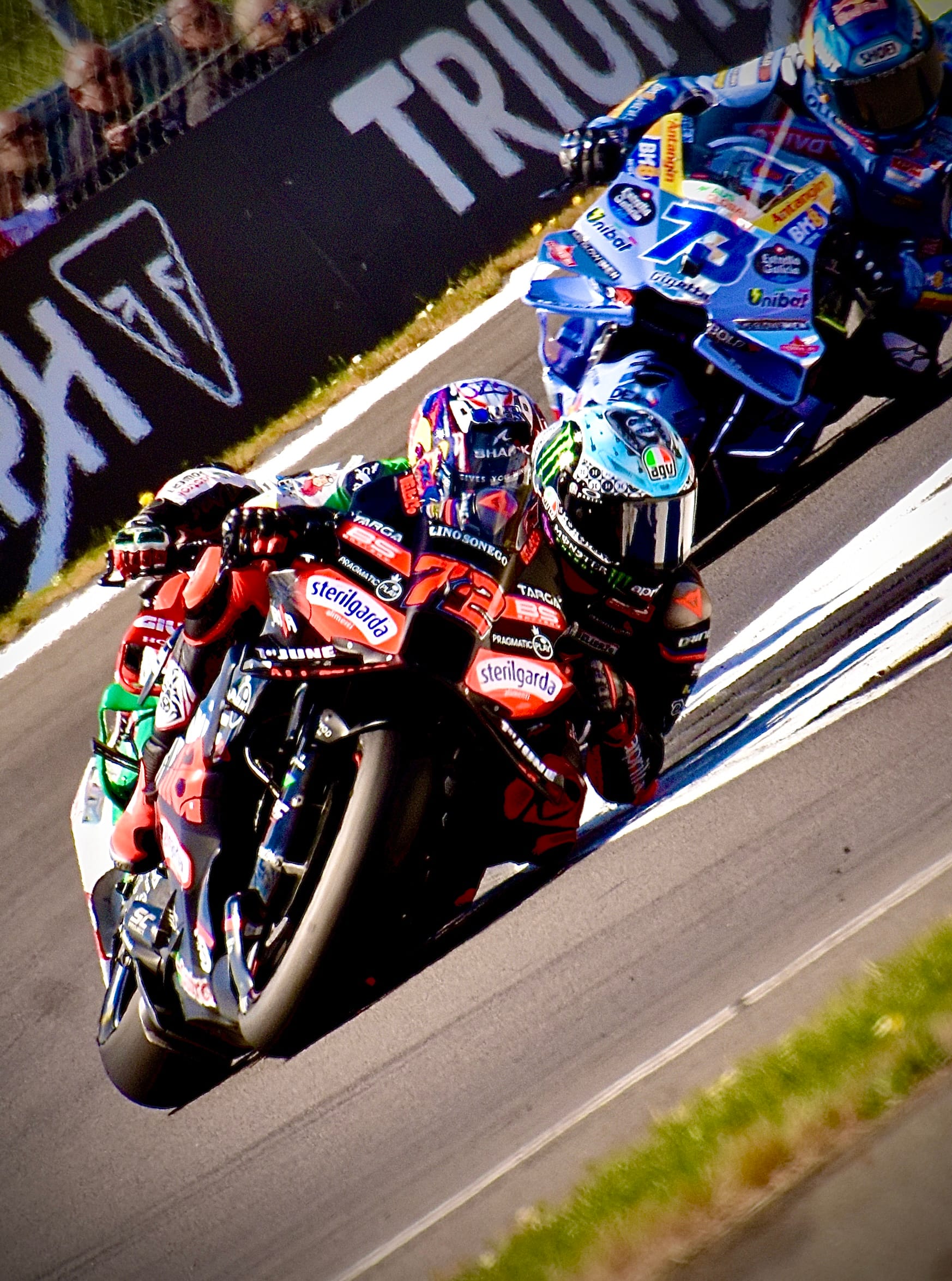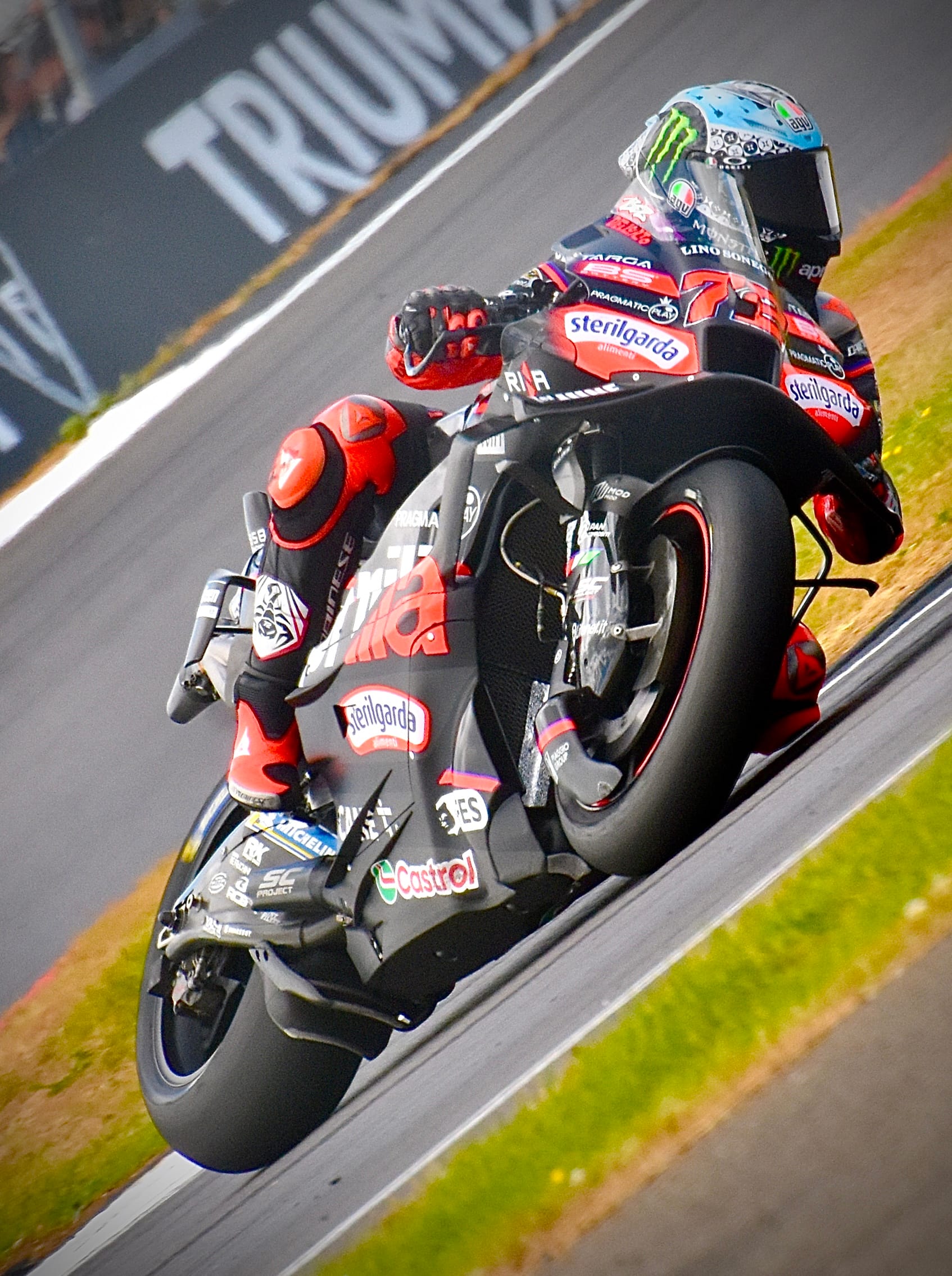 Sprint race and it was Alex Marquez #74 (BK8 Gresini Racing ) that pulled the pin to perfection in the Tissot Sprint at Silverstone, flying to victory by over three seconds after out-pacing Championship leader Marc Marquez (Ducati Lenovo Team). The battle for the podium was a gloves-off throwdown behind, with Fabio Di Giannantonio (Pertamina Enduro VR46 Team) coming out on top in a five-rider scrap on Saturday.
